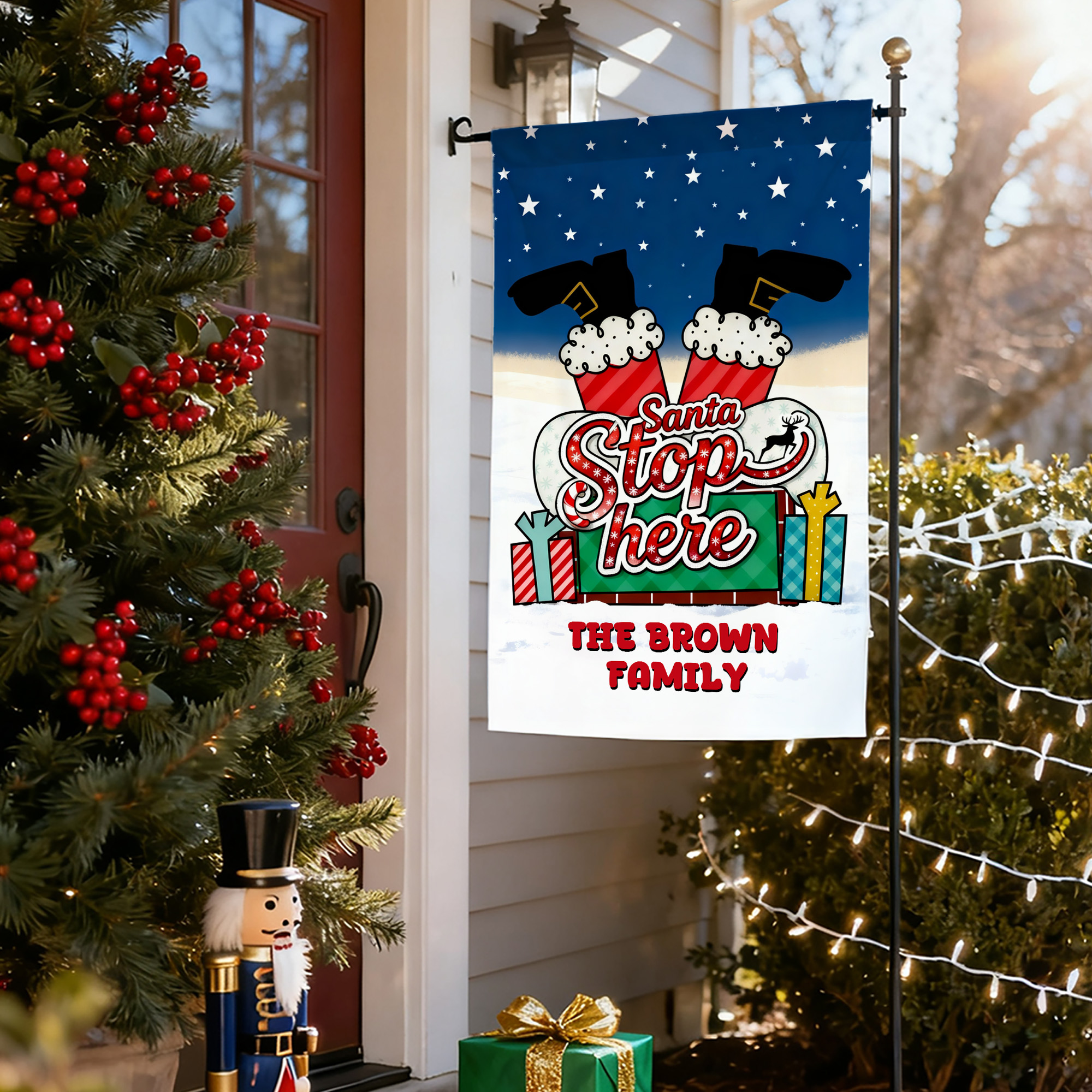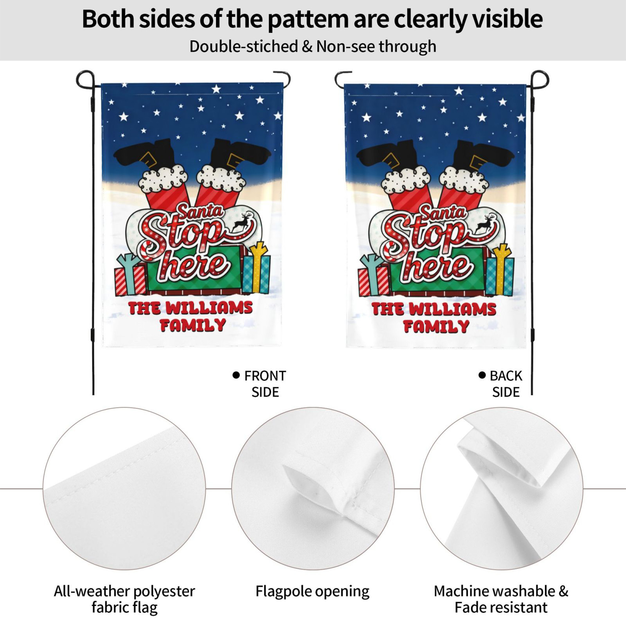 Personalized Santa Stop Here Garden Flag with Name, Santa in Chimney Yard Porch Outdoor Christmas Decor, Christmas Gift for Mom/Grandma/Family